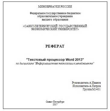 После завершения формирования реферата на основе этих данных сформируется титульная страница, и все данные будут отформатированы должным образом и правильно размещены на листе.
