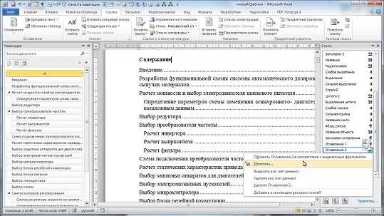 Как удалить заголовок из оглавления в Word 2010?