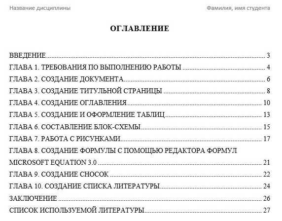 - Если все было сделано правильно, то на странице должно появиться выбранное вами содержание с указанием названий глав и их начальных страниц.