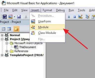 ΠΠΎΡΠ»Π΅ ΡΡΠΎΠ³ΠΎ ΠΎΡΠΊΡΠΎΠ΅ΡΡΡ ΠΎΠΊΠ½ΠΎ Π΄Π»Ρ ΡΠ°Π±ΠΎΡΡ ΡΠΎ ΡΠΊΡΠΈΠΏΡΠ°ΠΌΠΈ Visual Basic. Π ΡΡΠΎΠΌ ΠΎΠΊΠ½Π΅ Π½ΡΠΆΠ½ΠΎ ΠΎΡΠΊΡΡΡΡ ΠΌΠ΅Π½Ρ Β«InsertΒ» ΠΈ Π²ΡΠ±ΡΠ°ΡΡ Β«ModuleΒ».