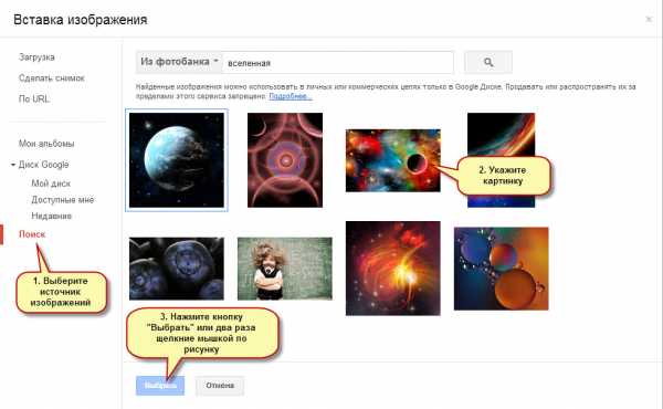 - Выберите объект и нажмите кнопку «Выбрать». Если рисунок вставляется из результатов поиска, щелкните по нему два раза левой кнопкой мыши.