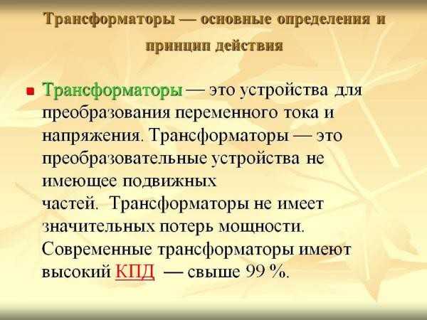 Трансформаторы, виды трансформаторов и их описание