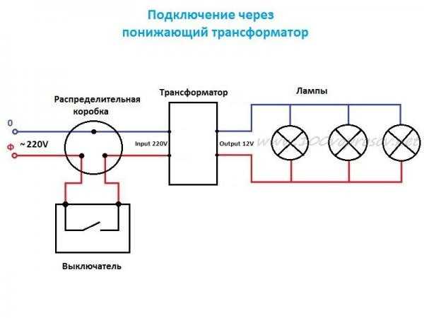 Схема подключения понижающего трансформатора