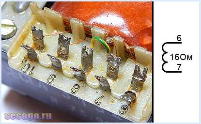 Вывод 8, к которому припаяна желто-зеленая жилка, ни как не звонился, поэтому смело утверждаем, что это экранирующая обмотка (экран), которую наматывают поверх первичной, чтобы устранить влияние ее магнитного поля на другие обмотки. Как правило, экранирующую обмотку соединяют с корпусом радиоаппаратуры.