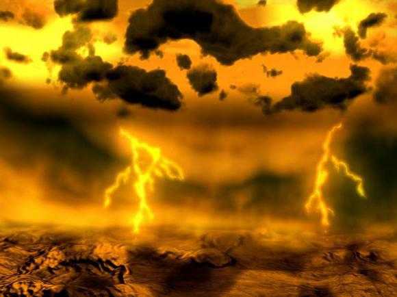 В отличие от Земли, в этом неприветливом мире облака состоят из серной кислоты, источниками которой являются многочисленные вулканы. Дожди из такого вещества способны разъедать любую органику. Небо окрашено в неприятный зеленовато-желтый оттенок.