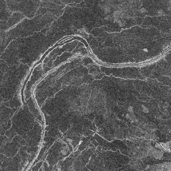Радарный снимок русел лавовых потоков на Венере