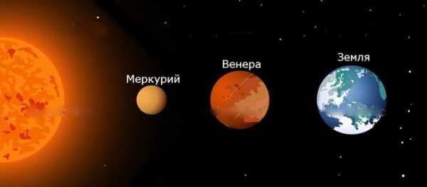 На Меркурии нет воздуха и какого-либо подобия атмосферы. Венера, в свою очередь, обладает атмосферой, состоящей из углекислого газа. Таким образом, на ее поверхности создается чрезвычайно высокое давление, за счет чего здесь постоянно поддерживается очень высокая температура.