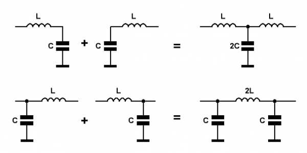 При этом получаются ФНЧ третьего порядка. Обычно, ввиду меньшего количества катушек, предпочитают П-образные звенья.