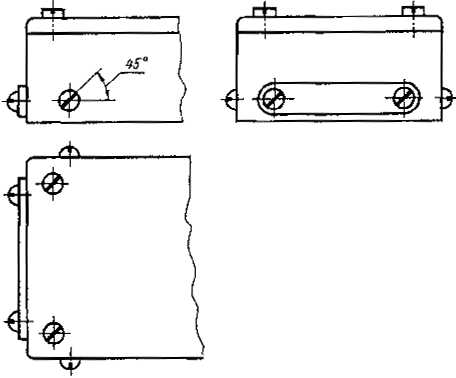 7. Шлицы на головках крепежных деталей следует изображать одной сплошной линией, как показано на черт. 3: на одном виде – по оси крепежной детали, на другом – под углом 45 ° к рамке чертежа.