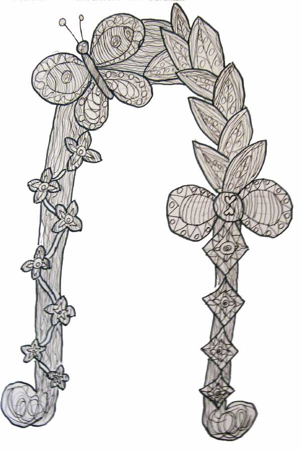А теперь нужно наложить узоры на ваш инициал. Выберите те орнаменты и линии, которые подчеркнут характер вашей буквы. Разделите изображение на части и заполняйте эти части узором!
