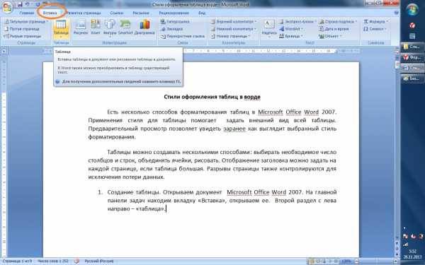 Вставка таблицы в версии Word 2010 и выше