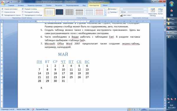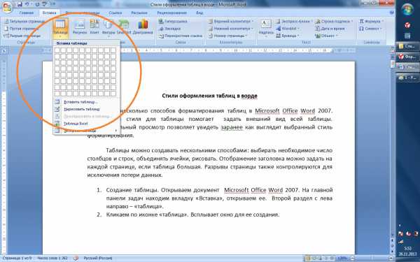 Создание таблиц в ворд