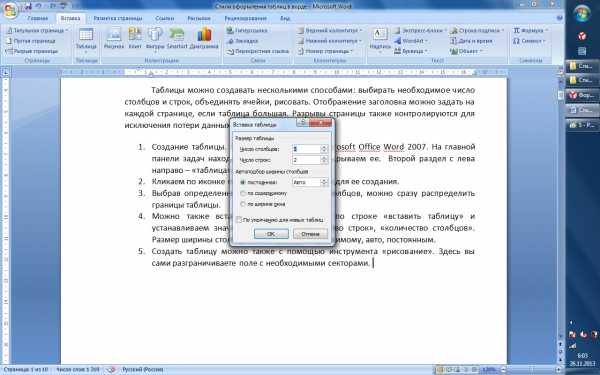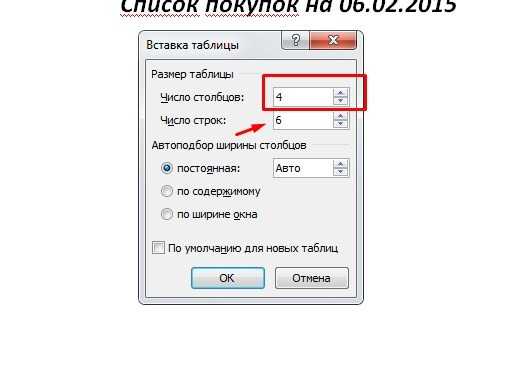 Рис. 3В этом окне нужно ввести Число столбцов и Число строк будущей таблицы. После того, как укажете число столбцов и число строк – нажимаете ОК