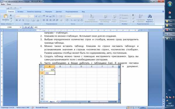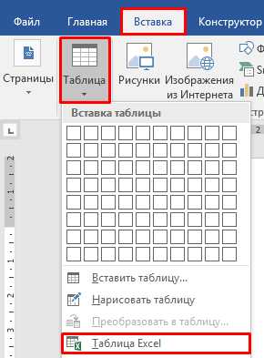 Создание таблицы в Ворде с помощью таблицы Excel