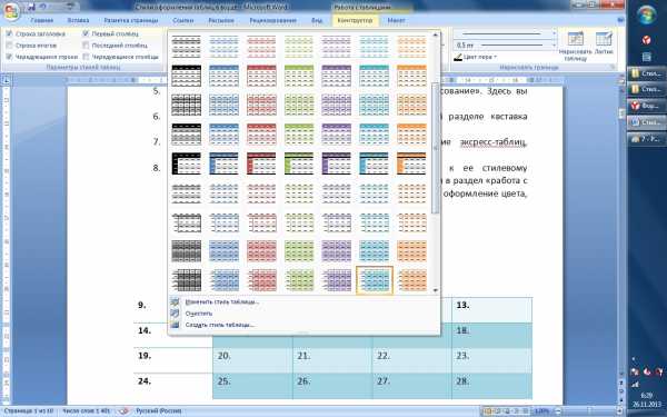 В Word 2007, 2010 и 2013 в меню таблиц есть такой интересный раздел, как «Экспресс-таблицы».