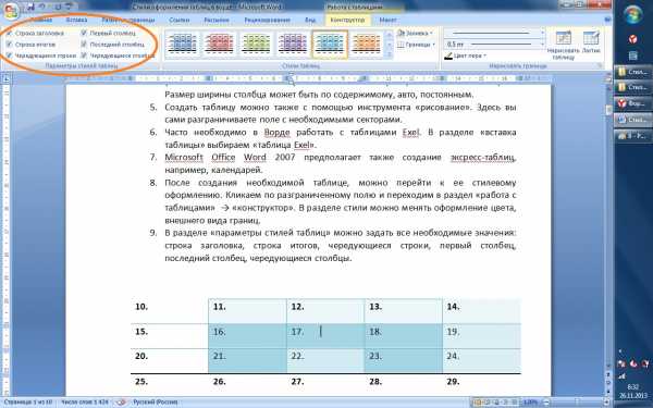 Ну и напоследок хочу добавить, что любую созданную таблицу можно приукрасить, чтобы она выглядела более презентабельно. Сделать это можно следующим способом, выделите таблицу и перейдите во вкладку КОНСТРУКТОР и укажите понравившейся стиль таблицы.