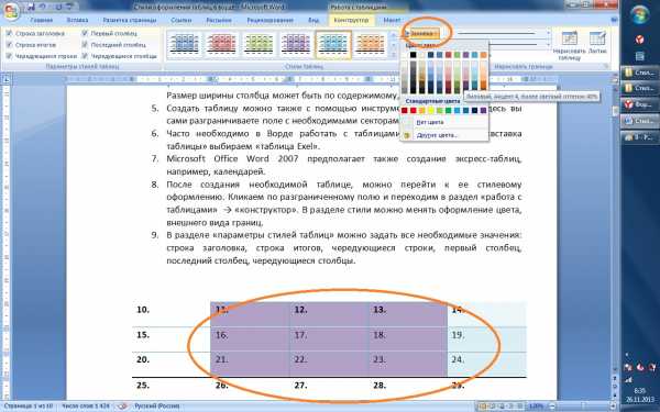 Рис. 7Теперь вы можете делать над текстом, находящимся в выделенной колонке, все действия, которые мы рассмотрели на уроке Форматирование текста в Word – можете изменить выравнивание текста в столбце (по центру, вправо, влево), можете изменить цвет, размер шрифта и т. д.