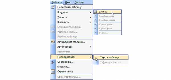 4) Конвертирование текста в таблицу;