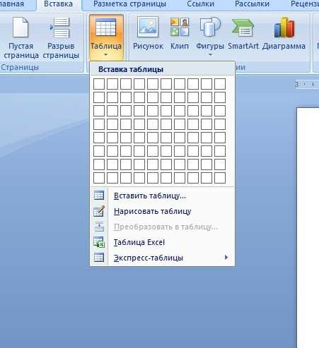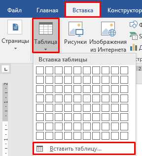Как сделать таблицу в Word – Вставка сетки таблицы