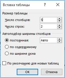 Как сделать таблицу в Word – Диалоговое окно «Вставка таблицы»