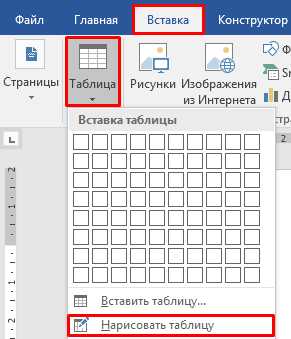 Итак, для начала во вкладке «Вставка» откройте меню «Таблицы» и выберите команду «Нарисовать таблицу».