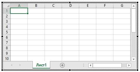 В результате на странице появится окошко с таблицей, которое очень похоже на обычный рабочий лист программы MS Excel.