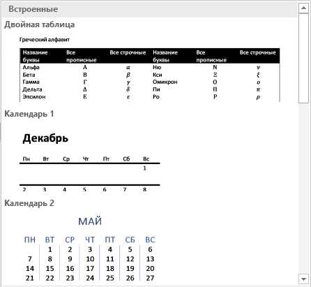 Вставка таблицы в Ворде с использованием шаблонов экспресс-таблиц