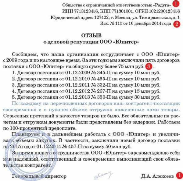 Письмо отзыв о работе компании