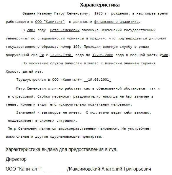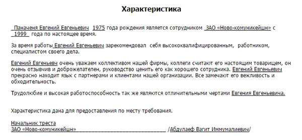 Как написать отзыв характеристику на работника образец