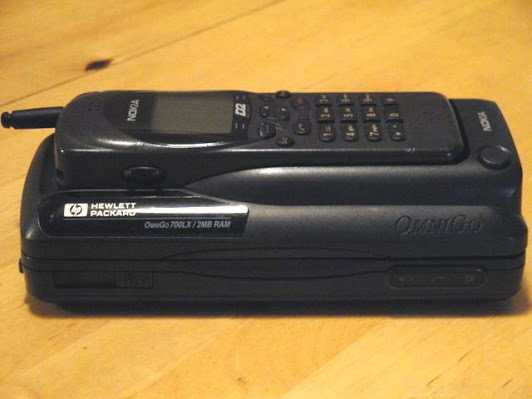Другой интересный эксперимент был осуществлен в 1996 году. Его провели компании Hewlett-Packard и Nokia. Плодом их совместных трудов стал КПК под названием HP 700LX. Можно считать этот девайс переработанной версией HP 200LX — раскладного карманного компьютера, оснащенного QWERTY-клавиатурой и монохромным дисплеем. Единственным заметным отличием стало появление специального места для установки сотового телефона Nokia 2110. Вот так «элегантно» американцы решили проблему нехватки голосовой связи. Конечно, назвать такое изделие смартфоном нельзя, так как оно состояло из двух совершенно независимых устройств.
