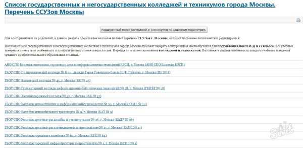 - Скачать список среднеспециальных учебных заведений Москвы можно на нашем сайте: Список среднеспециальных учебных заведений Москвы.