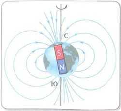 Для описания магнитного поля Земли применялась модель магнитного диполя (см. рис. 176), форма поля которого примерно такая же, как у стержнеобразного магнита. Ось диполя расположена так, что пересекает поверхность Земли в точках, называемых магнитными полюсами.