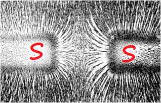 Если магниты обращены друг к другу одноименными полюсами, то магнитные линии – отталкиваются друг от друга.