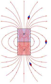 Магнитные линии магнита, как и магнитные линии магнитного поля тока представляют собой замкнутые линии. Вне магнита они выходят из северного полюса магнита, и входят в южный, замыкаясь внутри магнита, так же как магнитные линии катушки с током.