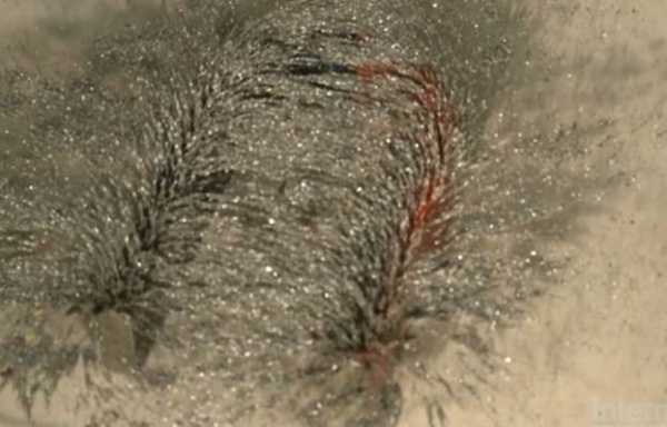 С помощью железных опилок, можно посмотреть магнитное поле постоянных магнитов.