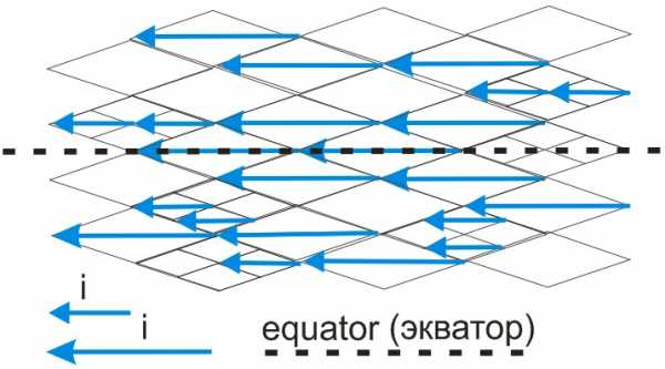 Если близлежащие векторы токов последовательно соединить в одну цепь, а потом обернуть ею земной шар, то получим замкнутый виток (round) с током со своим магнитным полем (рис. 11).