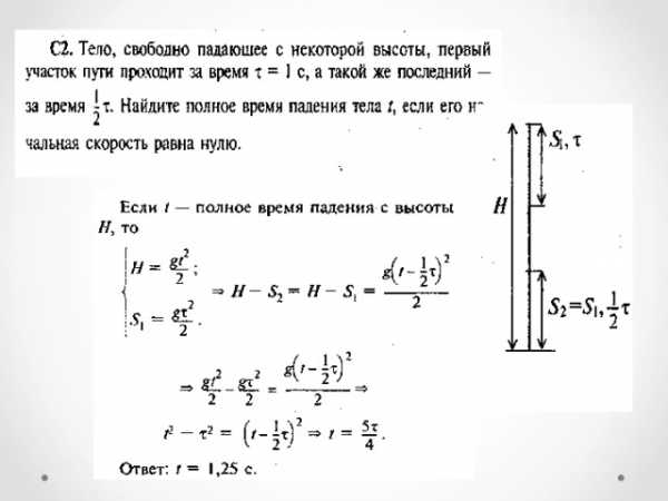 Так как движение происходит под действием постоянной силы (силы тяжести), то движение тел – равноускоренное. Поэтому: