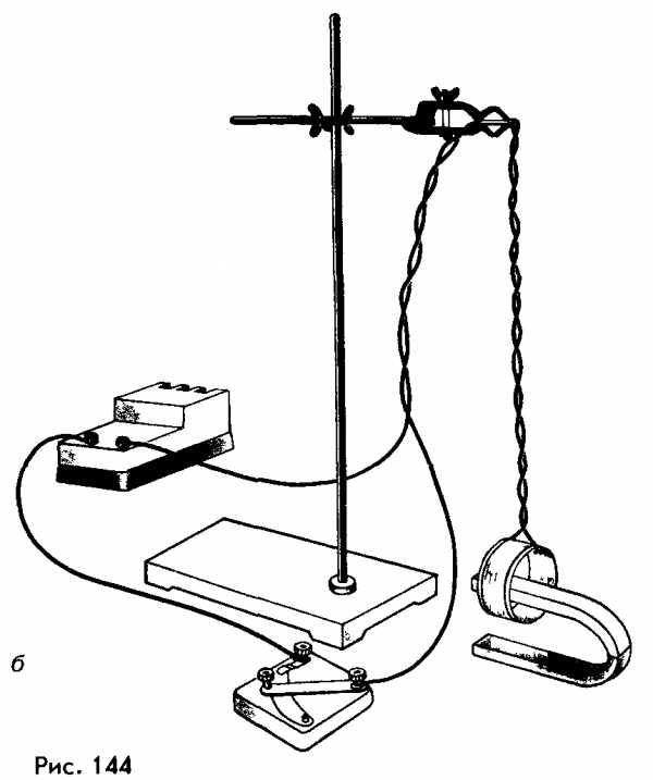 1. Π‘ΠΎΠ±Π΅ΡΠΈΡΠ΅ ΡΡΡΠ°Π½ΠΎΠ²ΠΊΡ, ΠΏΠΎΠΊΠ°Π·Π°Π½Π½ΡΡ Π½Π° ΡΠΈΡΡΠ½ΠΊΠ΅ 144, Π±. ΠΠΎΠ΄Π½Π΅ΡΡ ΠΊ ΠΏΡΠΎΠ²ΠΎΠ»ΠΎΡΠ½ΠΎΠΌΡ ΠΌΠΎΡΠΊΡ ΠΌΠ°Π³Π½ΠΈΡ, Π·Π°ΠΌΠΊΠ½ΠΈΡΠ΅ ΡΠ΅ΠΏΡ. ΠΠ±ΡΠ°ΡΠΈΡΠ΅ Π²Π½ΠΈΠΌΠ°Π½ΠΈΠ΅ Π½Π° Ρ Π°ΡΠ°ΠΊΡΠ΅Ρ ΠΌΠ°Π³Π½ΠΈΡΠ½ΠΎΠ³ΠΎ Π²Π·Π°ΠΈΠΌΠΎΠ΄Π΅ΠΉΡΡΠ²ΠΈΡ ΠΌΠΎΡΠΊΠ° ΠΈ ΠΌΠ°Π³Π½ΠΈΡΠ°.
