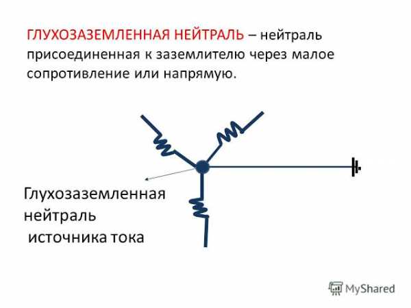 Глухозаземленная нейтраль представляет собой нулевой провод от генератора или трансформатора, непосредственно подключенный к заземляющему контуру.
