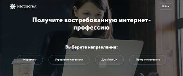 Допустим если вы захотите получить востребованную интернет профессию и самореализоваться вы это можете сделать в онлайн университете Нетология.