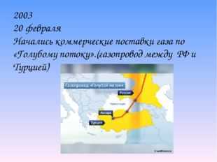 2003 20 февраля Начались коммерческие поставки газа по «Голубому потоку».(газопровод между РФ и Турцией)