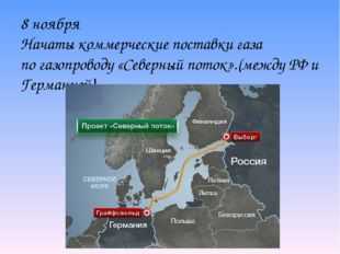 8 ноября Начаты коммерческие поставки газа по газопроводу «Северный поток».(между РФ и Германией)