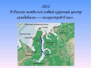 Описание слайда:2012 В России появился новый крупный центр газодобычи — полуостров Ямал.