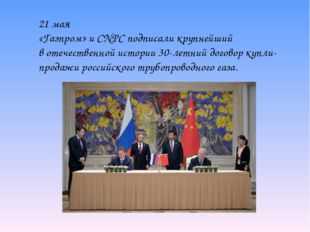 Описание слайда:21 мая «Газпром» и CNPC подписали крупнейший в отечественной истории 30-летний договор купли-продажи российского трубопроводного газа.