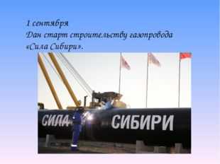 1 сентября Дан старт строительству газопровода «Сила Сибири».