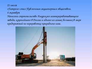 Описание слайда:21 июля «Газпром» стал Публичным акционерным обществом. 4 октября Началось строительство Амурского газоперерабатывающего завода, крупнейшего в России и одного из самых больших в мире предприятий по переработке природного газа.