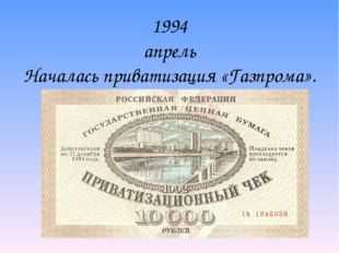 Описание слайда:1994 апрель Началась приватизация «Газпрома».