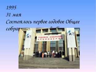 Описание слайда:1995 31 мая Состоялось первое годовое Общее собрание акционеров «Газпрома».