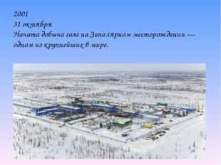 2001 31 октября Начата добыча газа на Заполярном месторождении — одном из крупнейших в мире.