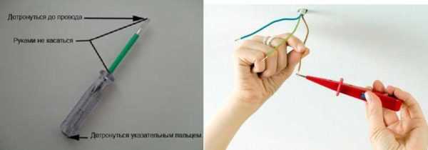 Определение фазного провода при помощи индикаторной отвертки